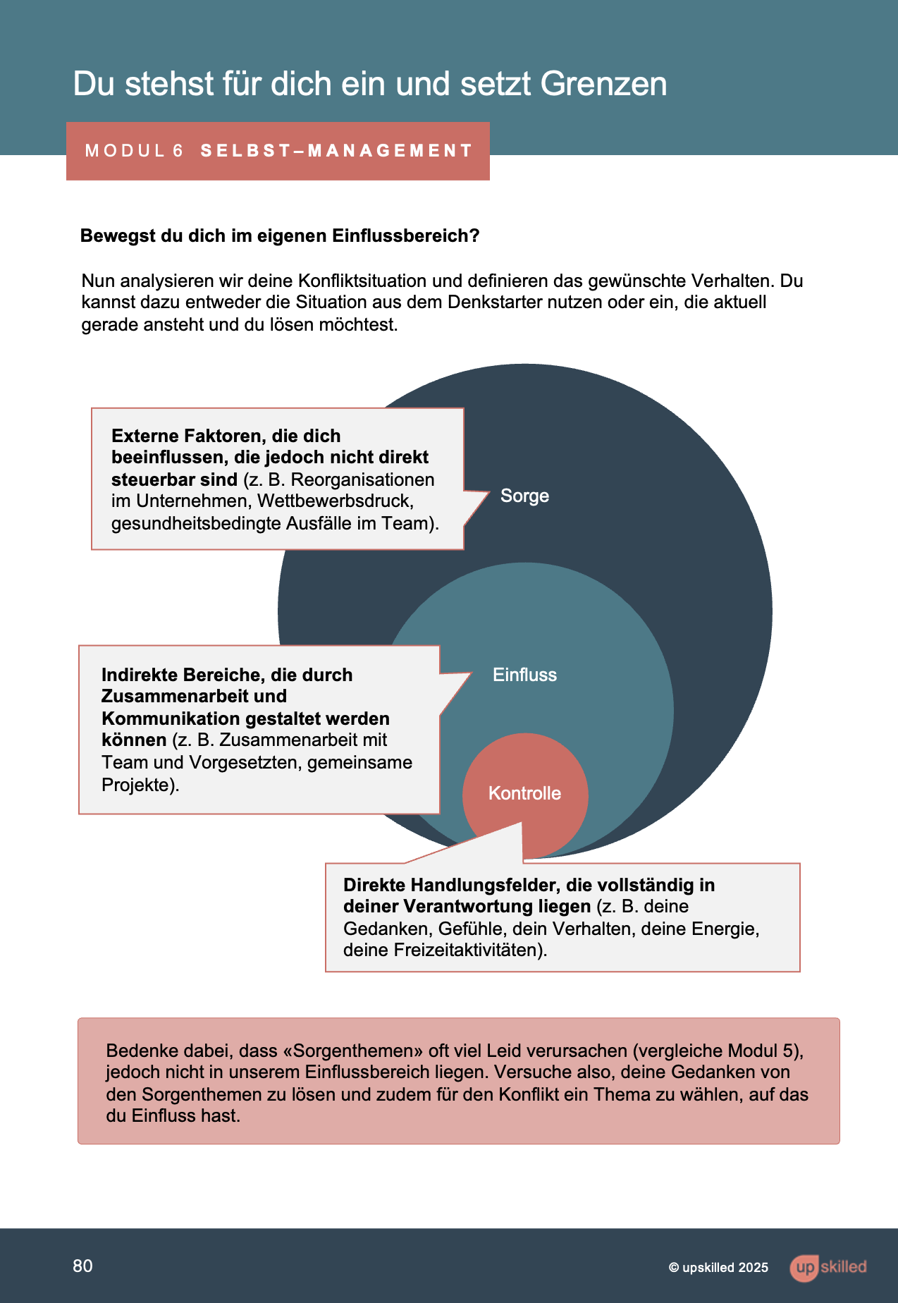 Das Programm ist anwendungsorientiert. Das heisst, es gibt jeweils kurze Inputs, die du umgehend auf dich anwendest.